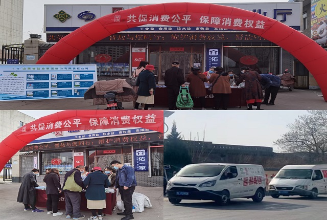 多地分公司利用电视广播专题活动、云直播、电子屏幕、和配送车悬挂横幅等形式进行宣传。活动中,工作人员向群众发放宣传资料近两千余份,宣传了《食盐专营办法》和国家盐业相关政策、《消费者权益保护法》、《山西省消费者权益保护条例》等法律法规,使广大消费者更多的了解“晋盐”产品,提高消费者对晋盐产品的信赖度,将“少吃盐、吃好盐、放心盐、选晋盐”的消费理念深入人心。