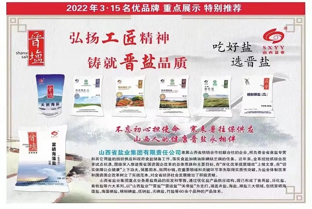 多年来,荣耀体育网页版牢记初心和使命,大力配合市场监管部门,严防、严管、严控食盐安全风险,保障全省食盐的质量安全和供应安全,将“诚信315,放心365,以诚筑信,品质为先,盐出必行”的社会形象深入到百姓心中。盐业集团温馨提示广大消费者,为了您和家人的身体健康,请从正规渠道购买食盐。“晋盐”是您放心、健康、值得信赖的选择。
