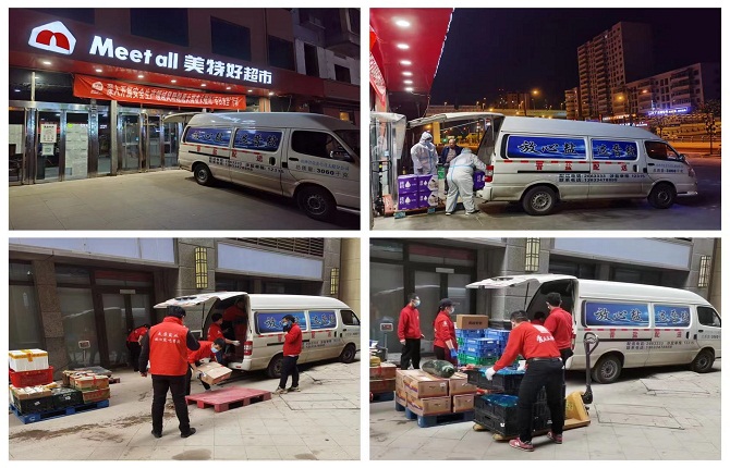 4月14日,盐业集团收到美特好超市致供应商伙伴的倡议书,公司党委立即发出“防控保供双手抓”号召,迅速安排集团公司直属单位太原分公司和兴盐实业有限公司调度配送车辆,驰援美特好超市。两家直属单位闻令而动,立即发出倡议,干部职工踊跃报名,短短几分钟志愿者迅速集结完毕。第一时间抽调办有通行证的5辆配送车和10名志愿者以及配送司机参与到美特好超市物资运输支援工作中,同时配备了充足的消毒液、洗手液、口罩、手套等防疫物资,确保每位志愿者做好自身疫情防护工作。