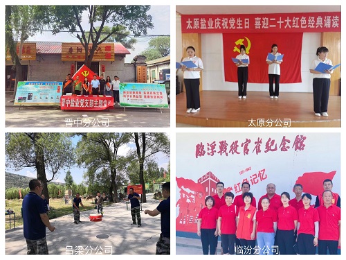 在庆祝中国共产党成立101周年,喜迎党的二十大胜利召开之际,山西省盐业集团直属单位传承红色基因,弘扬伟大建党精神,相继开展了参观红色记忆馆、慰问老党员、趣味运动会、高唱《国歌》、重温入党誓词等一系列党日活动。激发党员“铭记历史、永葆初心”使命和工作热情,鼓舞全体员工“振兴盐业事业,重塑盐业辉煌”的信心和斗志。