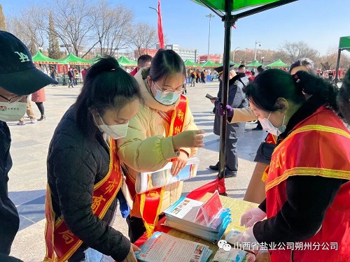 3.15上午9时,山西省盐业公司朔州分公司联合并参加由市区两级政府主办、朔州市市场监督管理局、朔州市消费者协会等承办20多个单位参加在朔州飞马喷泉广场举办的2023年“3.15”国际消费者权益日宣传活动。今年的“3.15”主题是“创优消费环境,提振消费信心”。