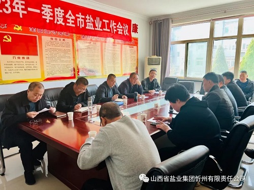 2023年4月7日,山西省盐业集团忻州有限责任公司召开2023年一季度全市盐业工作会议,以各项业务数据指标为基准,全方位分析全市各县级公司一季度工作实效,研究部署下一阶段工作。省集团公司副总经理穆玉彬出席,分公司经理张丑荣、书记胡卫宾、副经理王天力、王永胜、各县级公司经理及各部门负责人参会。会议由分公司副经理王天力主持。