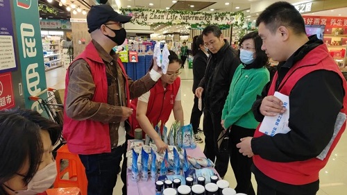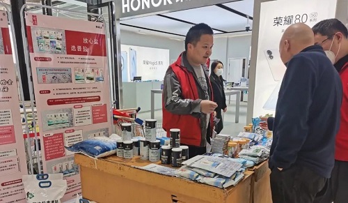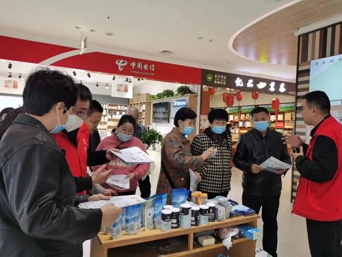 02根据盐品陈列展示,向顾客讲解如何辨别假冒伪劣食盐,提醒消费者慎重购买来路不明的陌生品牌食盐,倡导大家购买正规渠道、健康安全、品质优良的“晋盐”牌食盐产品。
