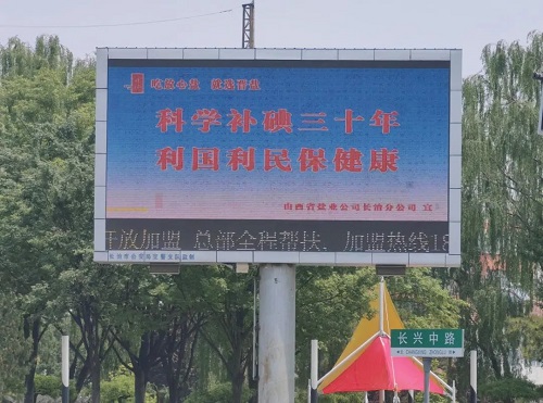 一是开展大屏宣传活动。5月8日以来,公司利用街边大屏,开展防治碘缺乏病宣传。以“科学补碘三十年,利国利民保健康”为主题,确保活动区间,全天不间断、LED电子屏幕循环滚动播放宣传图集,进一步提升广大群众对防治碘缺乏病的关注度。