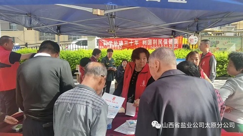为让广大人民群众充分认识碘缺乏病的危害,深刻理解科学补碘、健康用盐的重要意义。太原盐业分公司配合太原市卫健委、太原市疾控中心、太原市场监督管理局、太原市教育局、山西省营养学会、山医大二院、清徐县供销社、清徐县盐业公司等部门在小店区、杏花岭区、尖草坪区、万柏林区以及清徐县5个主(分)会场,分别开展了声势浩大,形式新颖的“防治碘缺乏病日”主题宣传活动。
