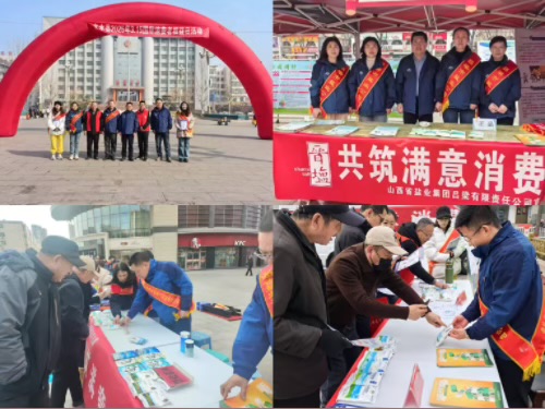 运城分公司参加了由盐湖区市场监督管理局和消费者协会举办的以“共筑满意消费”为主题的宣传活动。同日,还深入到辖区北相镇集会开展宣传活动。
