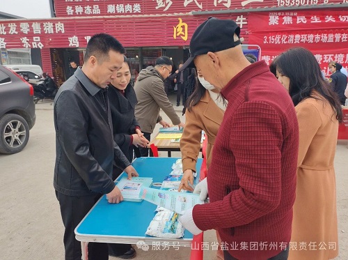 3.15国际消费者权益日来临之际,为增强消费者维权意识,提升消费者自我保护意识。忻州盐业于3月11日在华瑞农贸市场积极参与忻州市市场监管局组织的“3.15国际消费者权益日”宣传活动。